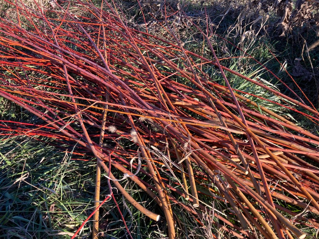 Dark Dicks: This variety gets nice reviews from other growers, saying that the rods are long and large with dark red stems that dry to a deep purplish brown. For me, the first year (started in April 2024 with very skinny cuttings), they were short, skinny, and bushy/branchy. Starting them in April with not very big cuttings may have contributed to that. The second year they’re looking much better–tall, straight, and more prolific. I’m excited about how dark they are!